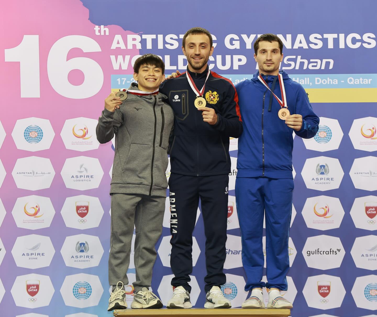 卡塔尔世界杯进行了男6女4共10个单项比赛,在男子自由操项目上,哈萨克斯坦选手摘得金牌;男子鞍马项目上,约旦选手摘得金牌;男子吊环项目上,亚美尼亚选手摘金;男子跳马项目上,亚美尼亚选手夺冠;男子双杠项目上,菲律宾选手最终夺冠;男子单杠项目上,中华台北选手夺金。